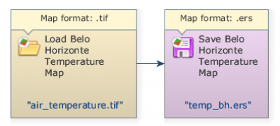What will the model do? It will load “air_temperature.tif” file and save this map to a different file with another extension. This new map will be saved to the new format in the selected folder. We will use initially the air_temperature raster layer Guidebook_Dinamica_5\Database\Climate_bh\air_temperature.tif