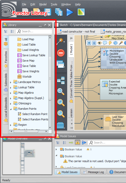 You can drag functor e submodels from the library to the model presentation area to use them in your model.