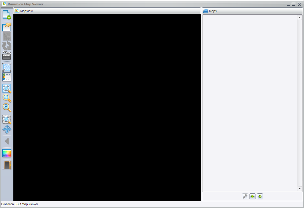 The main window is where the most important information regarding the viewer state is located. On the left you have the toolbar related to the viewer state as a whole, on the right you have a list of loaded maps and tools to manage them.